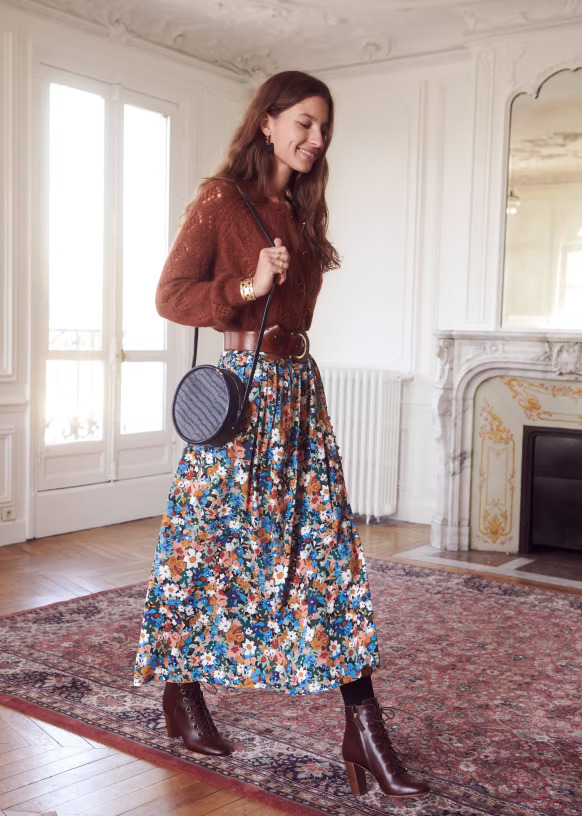 The Sézane Nelly Fall Flowers skirt, highly sought after on Vinted